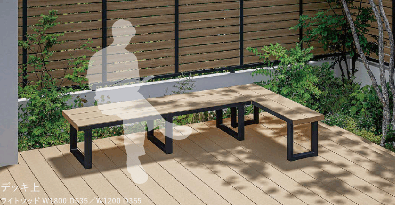 長年愛され続けている人工木デッキ「樹ら楽ステージ」に、待望のベンチ型が仲間入り。