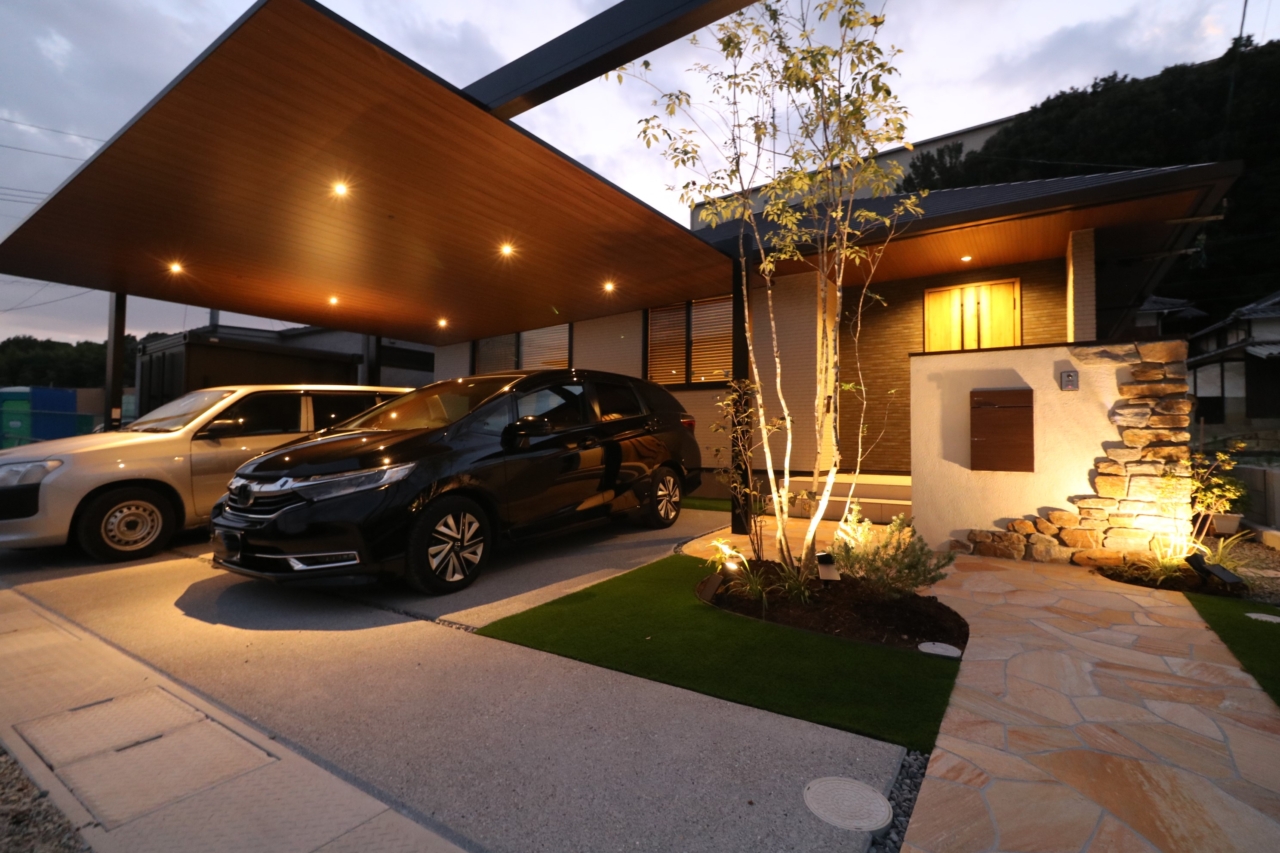カーポートはデザインの一部としても機能し、住まいに統一感と高級感をプラス。