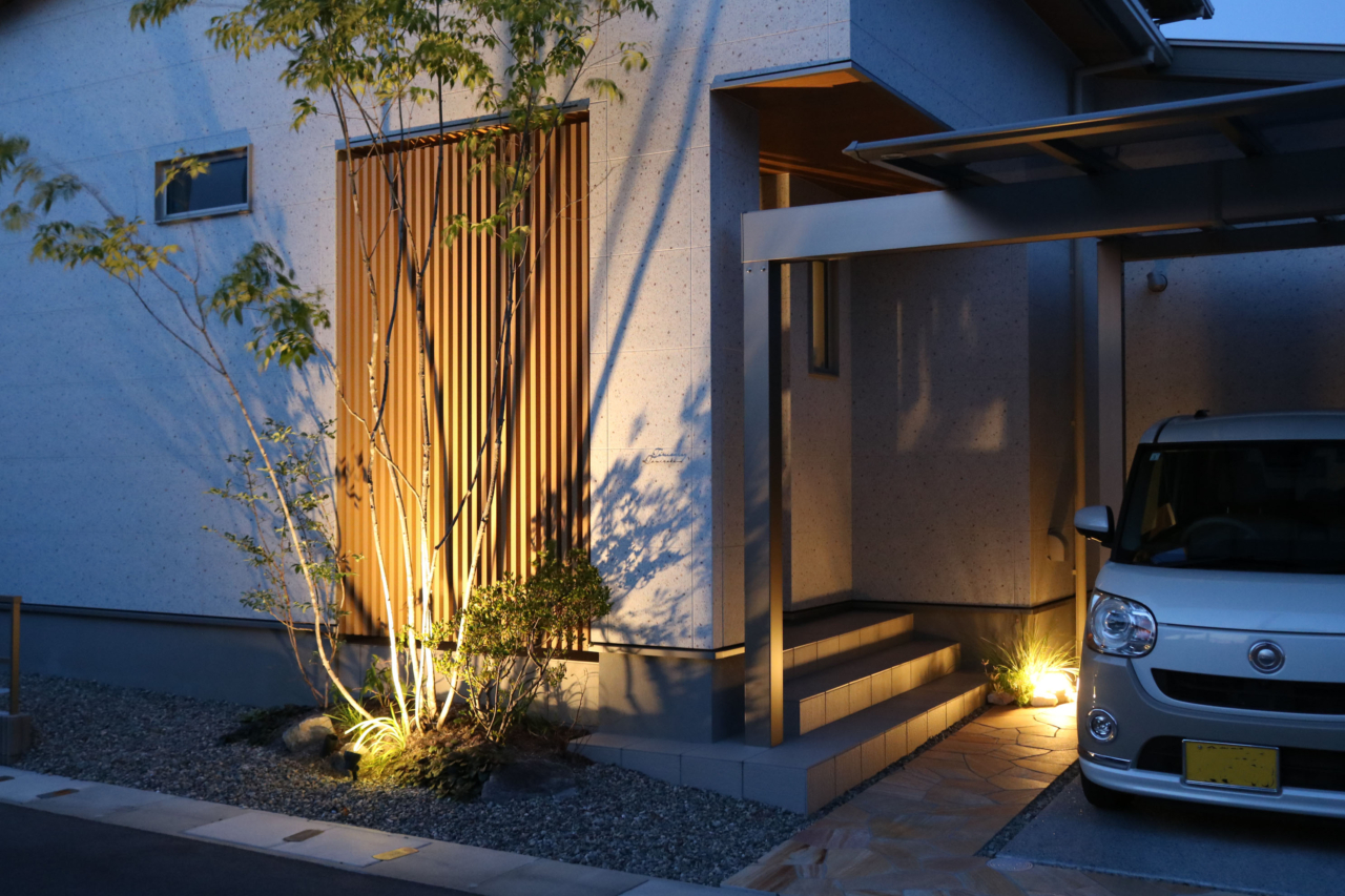ほのかに灯る外構照明が迎えてくれるだけで、毎日の帰宅が少し楽しみになる、そんな声も多くいただいています。